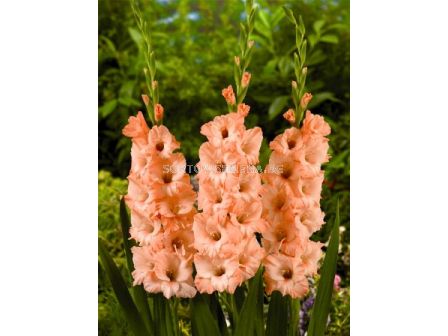 Името на гладиола произхожда от латинското (gladius) – меч, (gladiolus) – малък меч, листата на гладиолата имат мечовидна форма. Цветовете са широки , фуниеобразни, събрани в съцветие върху право цветно стъбло. Височината на растенията варира за различните сортове от 90 до 150 см. Съществуват сортове с най-разнообразна окраска – бяла, розова, жълта, червена, оранжева, виолетова – в чисти тонове или пъстри. Гладиолите се размножават чрез луковици, които се засаждат от края на март до юли.