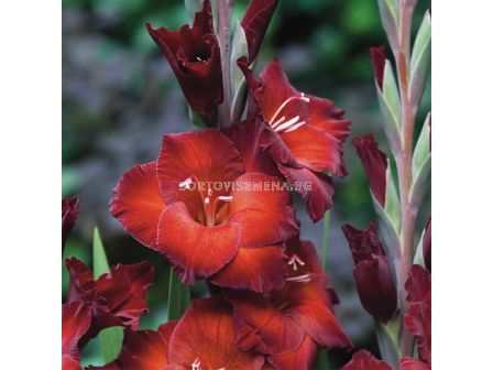Този зашеметяващ гладиол се отличава с кадифено-червени цветчета, които се отварят, за да разкрият огнени оранжево-червени венчелистчета с прекрасни ръбове с цвят на червено вино. Аленочервените ресни придават на това сензационно разнообразие необичайно, изтънчено усещане.