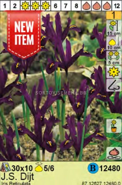 Луковично растение, тип джудже, високо до 12 см, с линейни, среднозелени листа и цветове с диаметър 8 см. Цъфтящо в началото на пролетта, венчелистчетата са интензивно виолетово-лилави, маркирани с централна жълта лента и оградени с яркосини до тъмнолилави пръски през есента.
