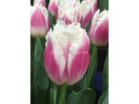 Красиво лале с наситено розови венчелистчета и чисто бели ресни. Цъфти в средата на пролетта. Лалето „Siesta“ изглежда красиво, както в градината, така и в букети.