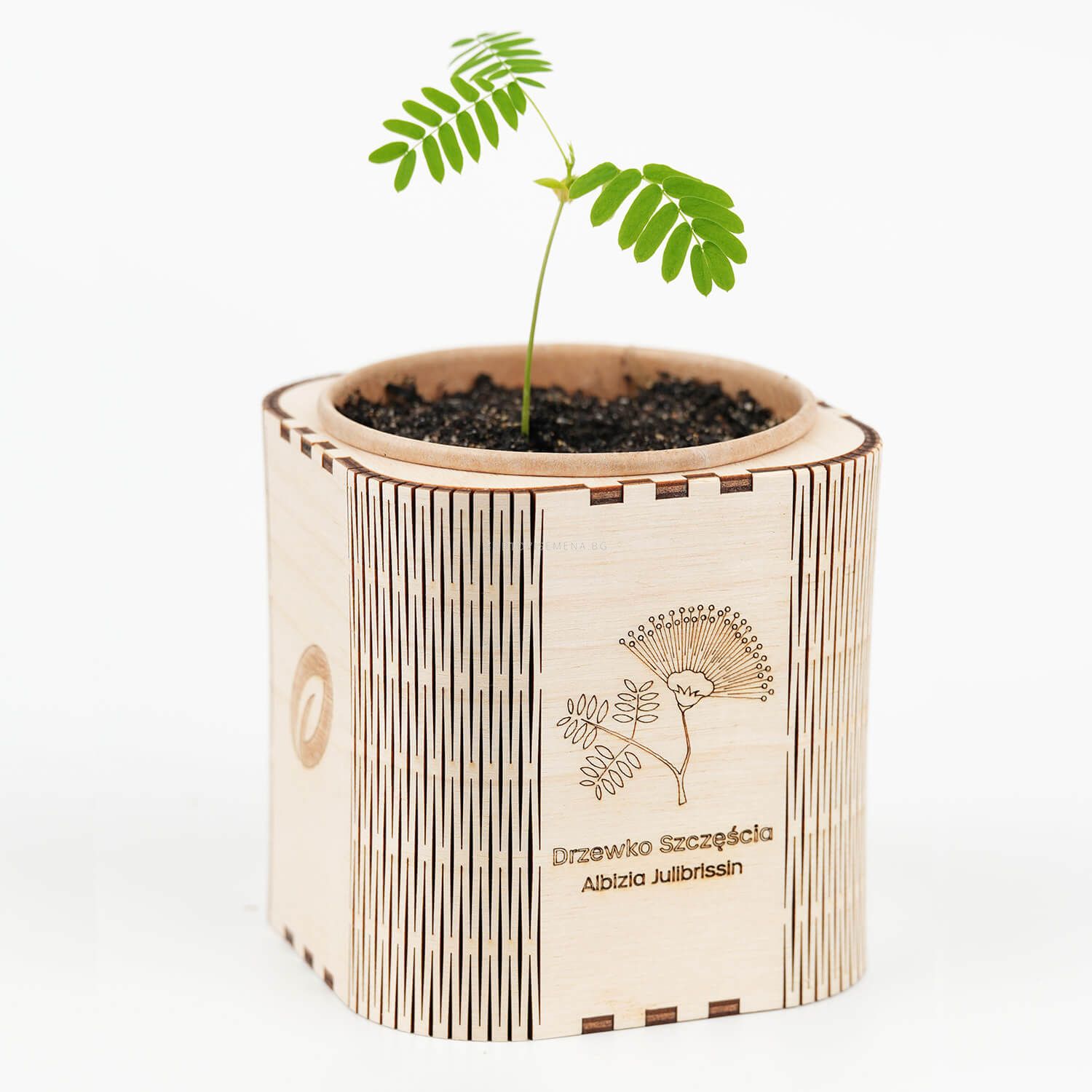 Просто поставете семената в почвата и поливайте редовно и само след няколко седмици ще се наслаждавате на зелена млада фиданка Албиция. Можете да я засадите в градината от ранна пролет до есен, заедно с биоразградимата чаша, която ще се разложи след кратко време. Можете да дадете втори живот на саксията от бреза, като я използвате за по-нататъшни засаждания или като органайзер за канцеларски материали на бюрото.